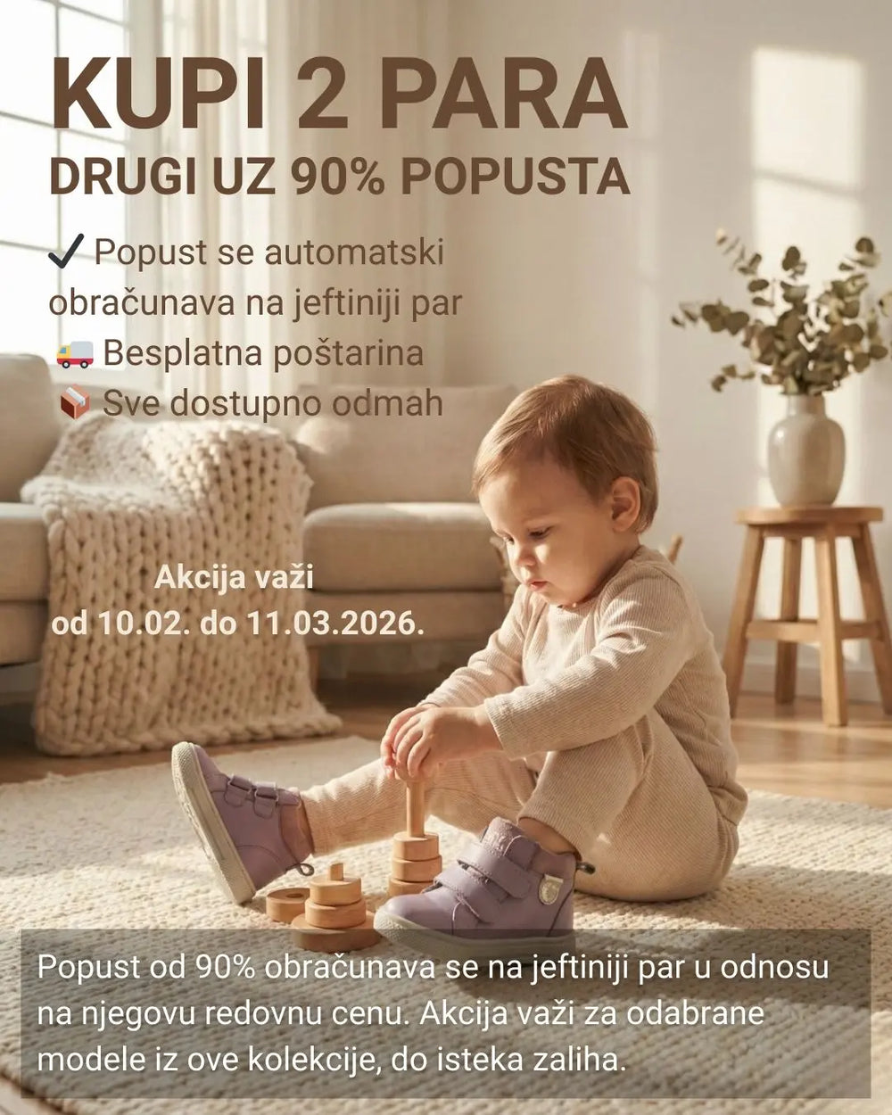 obuća je nastala iz ljubavi naše porodice prema deci. Naša misija je da pružimo mališanima udobne i kvalitetne cipele koje će im pomoći da sigurno i sa osmehom istražuju svet oko sebe.